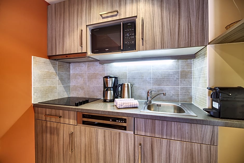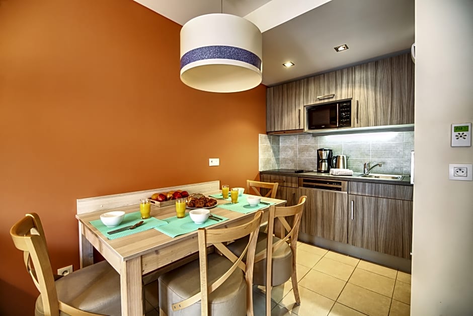 This apartment features a living area with 1 double sofa bed and one bedroom with a double bed. Beds are made prior to arrival. It has one bathroom with a shower. The fully equipped kitchenette opens on the living area.